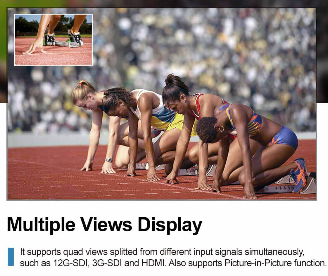 - Abundant interfaces: 3G-SDI, HDMI, VGA, AV input,