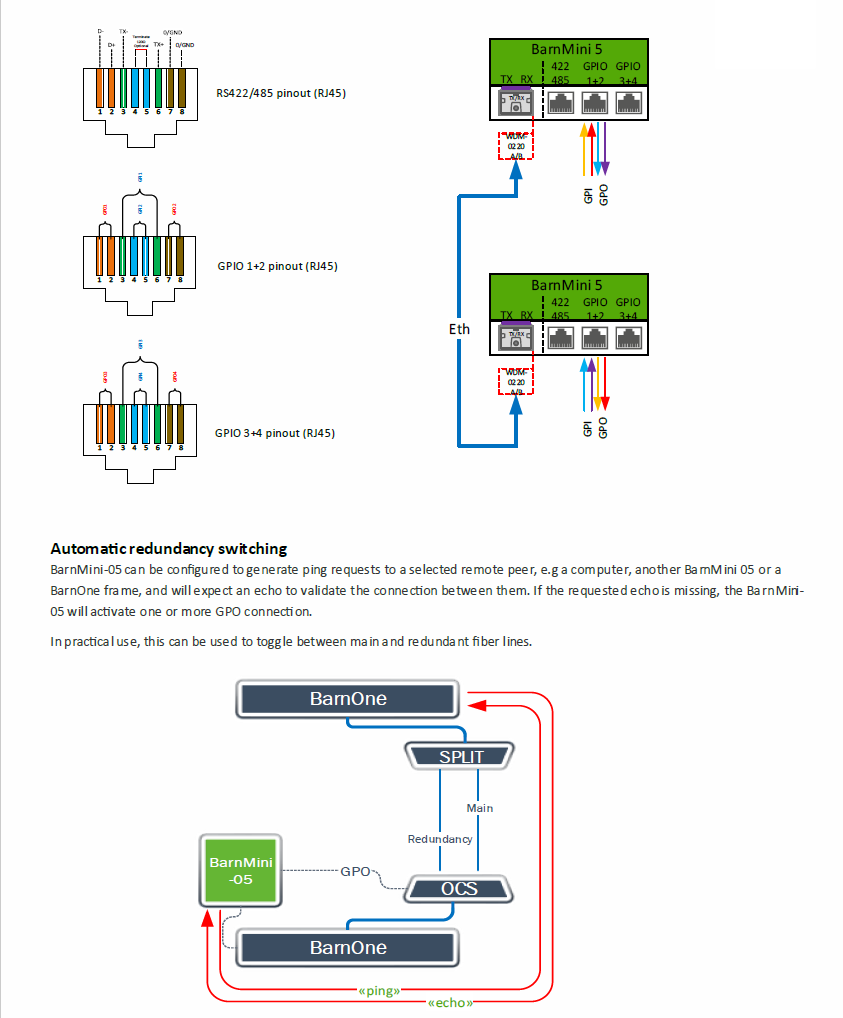 The BarnMini-05 is our most advanced BarnMini module. This is a compact way to combine an RS422/485, 4 x GPI and 4 x GPO, controllable via an Ethernet/SFP port. The unit can serve as an intelligent bridge between many third-party devices.